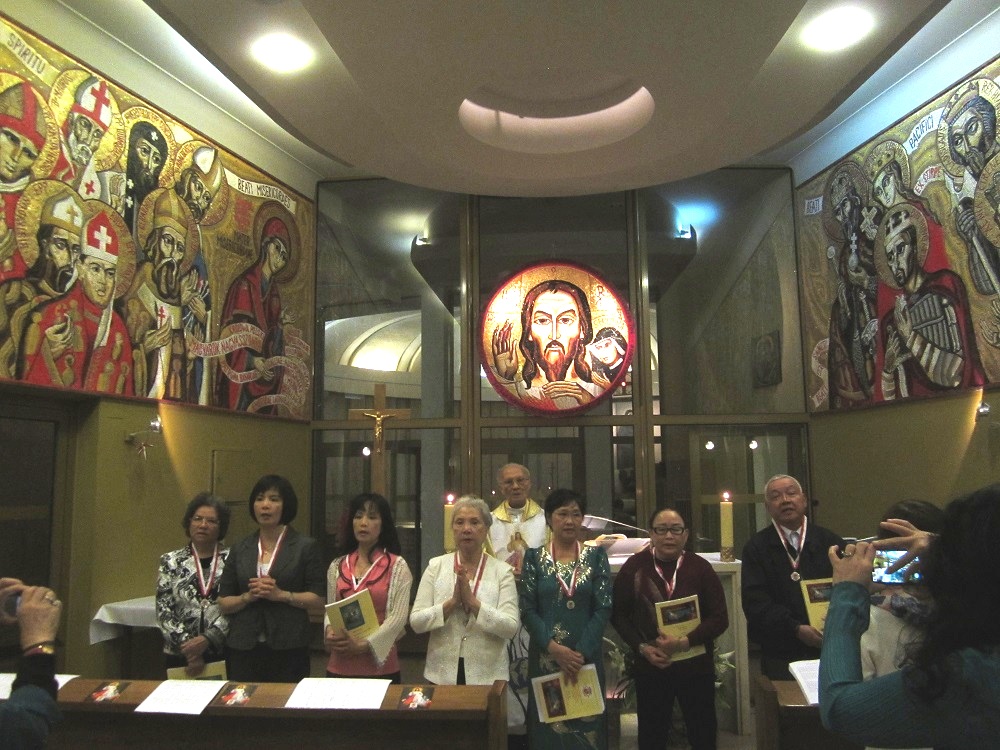 trước hết 3 tân TĐCTT nữ từ chuyến Hành Hương Tia Sáng Từ Balan 12 ngày 24/4 - 5/5/2014 ở Vatican và Balan - 3 mẹ con trong phái đoàn 24 người;