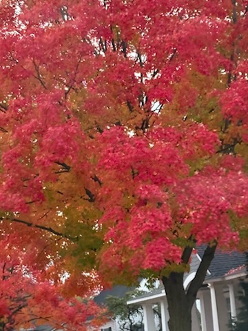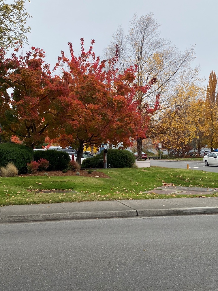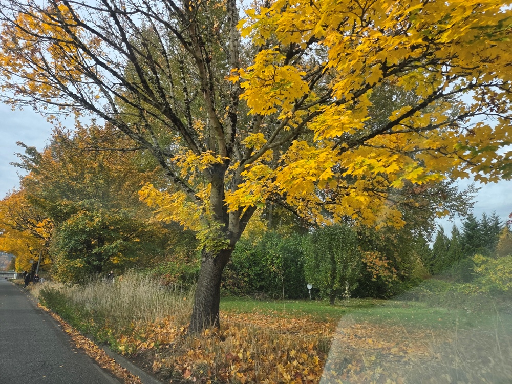 Hai bên đường được đổi mầu sắc (vừa vàng vừa hường) của một Mùa Thu buồn, nhất là một buổi chiều âm u lấm tấm mưa như ngày cuối Tháng 31/10/2025 này