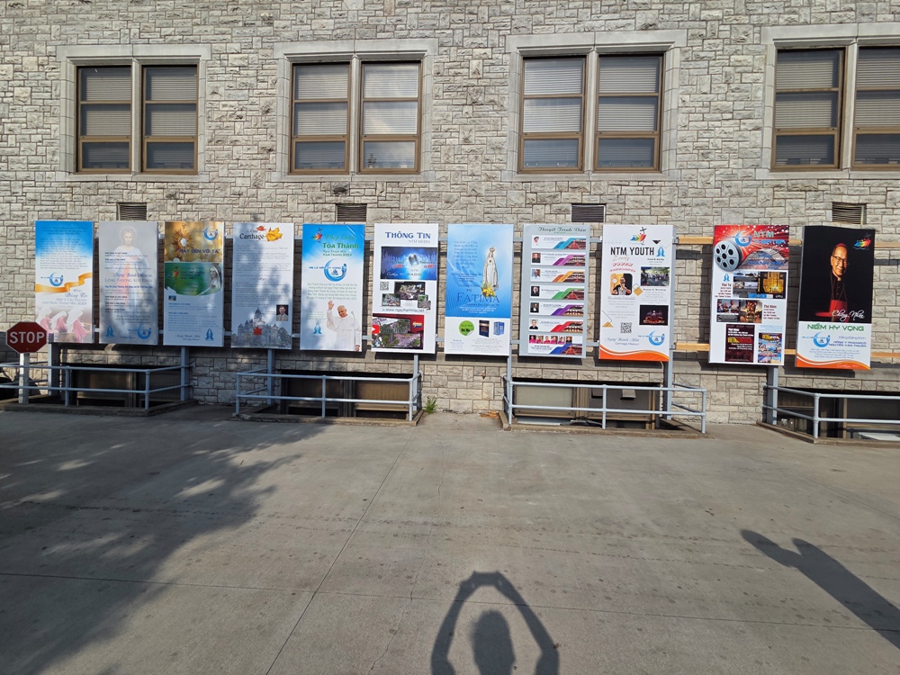 Vì là thời điểm 50 năm tha hương nên một bộ sưu tầm hình ảnh lịch sử đã được tổng hợp và trưng bày gợi nhớ tạ ơn ở đằng sau Tượng đài Mẹ Tỵ nạn dưới đây