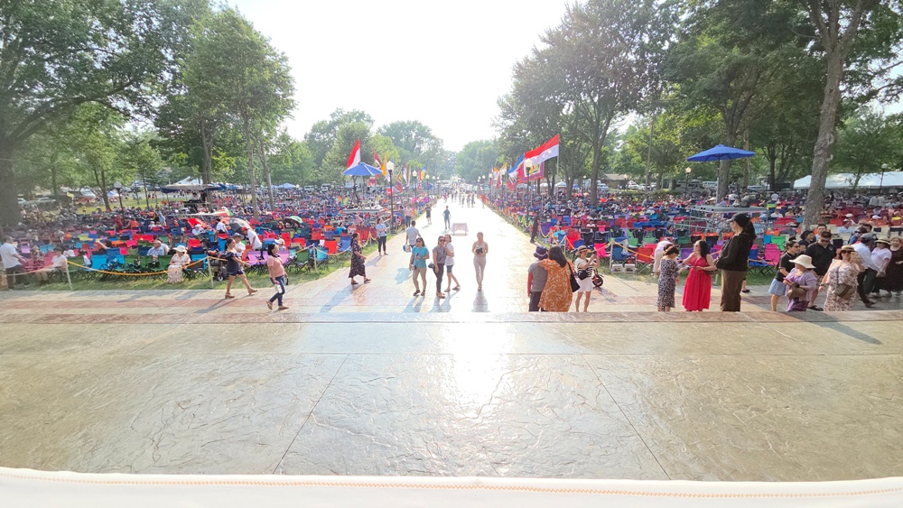 Ở phía trước 2 bên lễ đài có màn ảnh để CĐ Phụng vụ ở xa theo dõi rõ hơn, và 1 màn ảnh nữa ở gần Tượng đài Mẹ Tỵ Nạn.