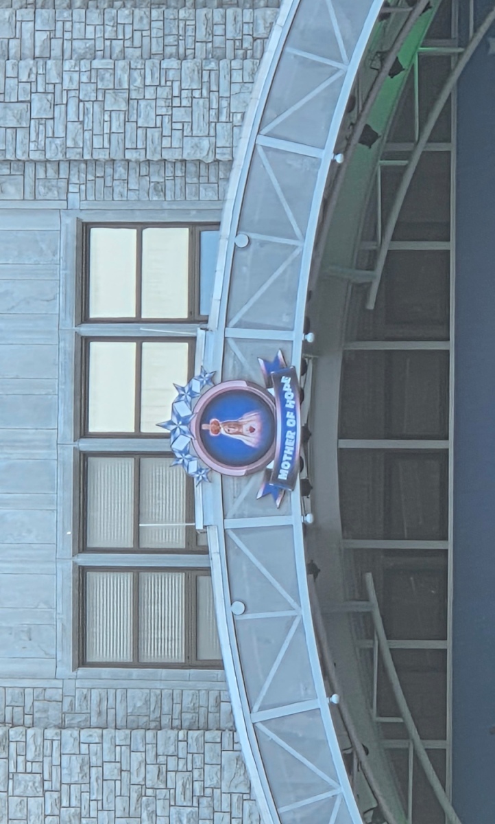 Ngày Thánh Mẫu: Vòm cung bao che bên trên Lễ đài ở ngoài tiền đường Tòa Nhà 100 năm