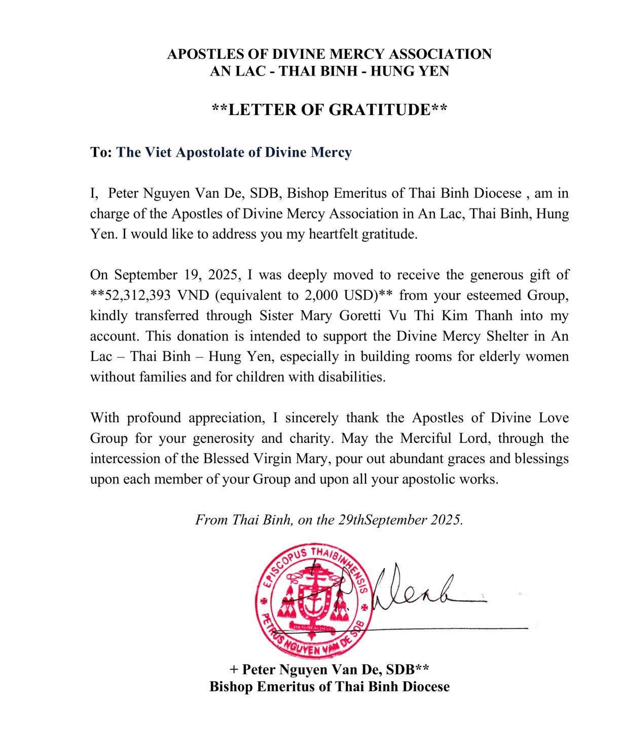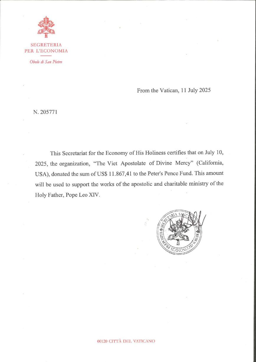 cấp cho chúng con The Viet Apostolate of Divine Mercy 1 chứng nhận