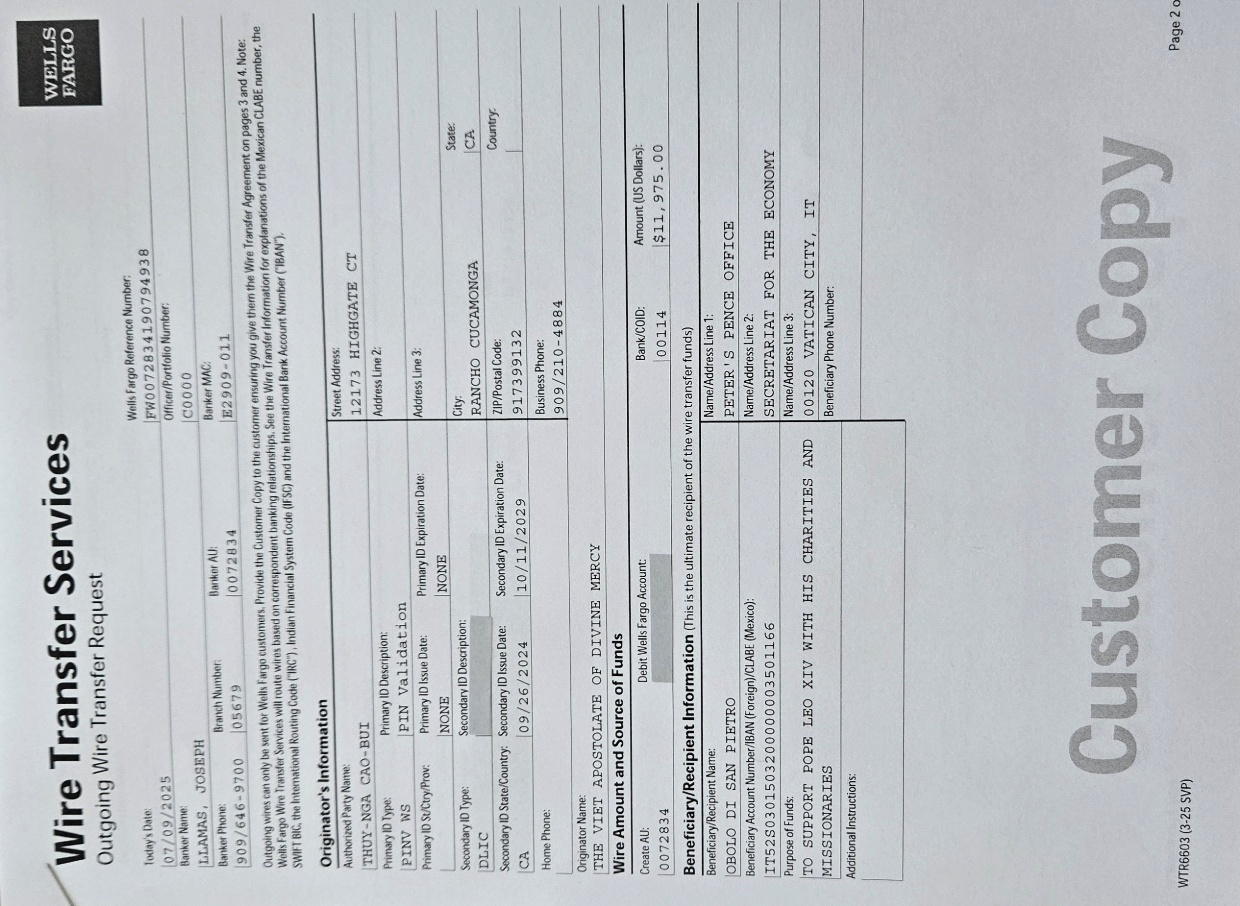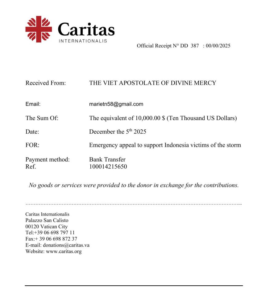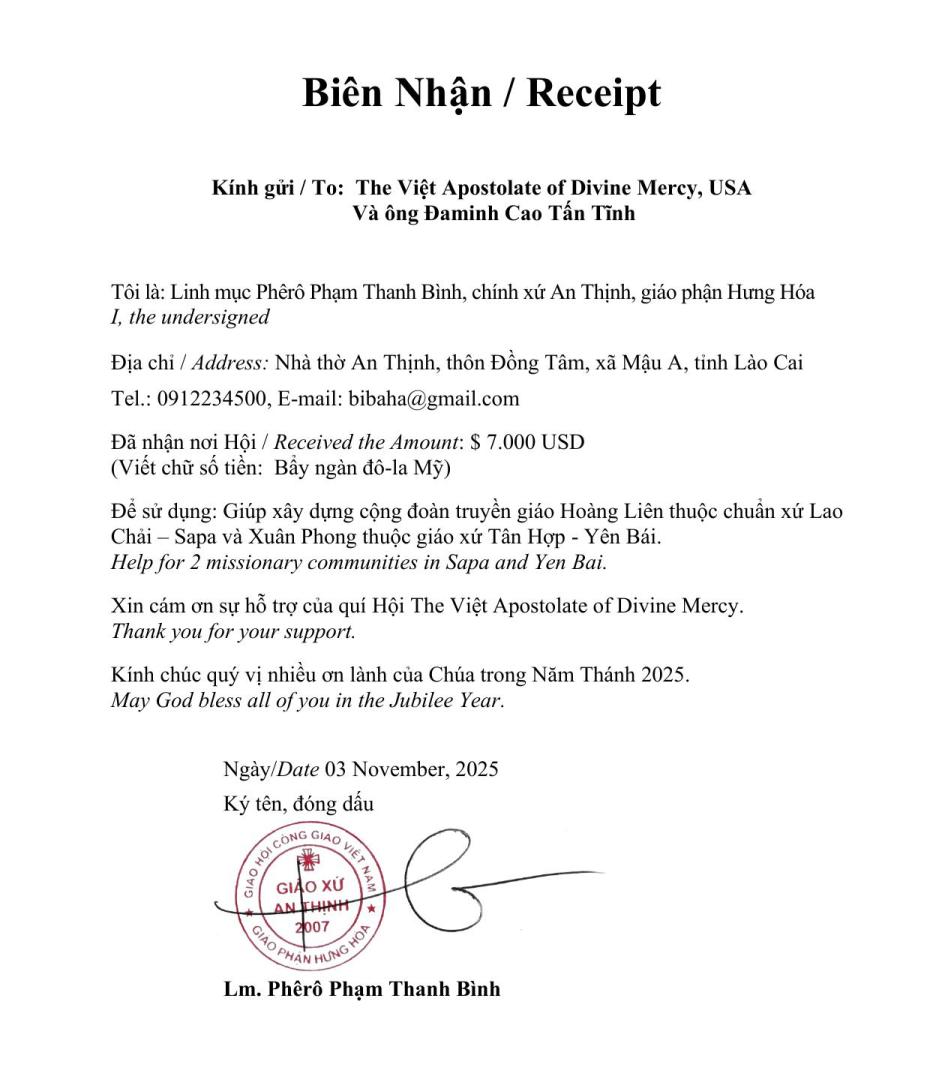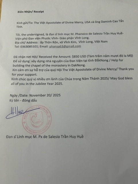 Tạ ơn LTXC. Chúng con mới chuyển ngân 2 ngàn MK về cho Tu Hội Tông