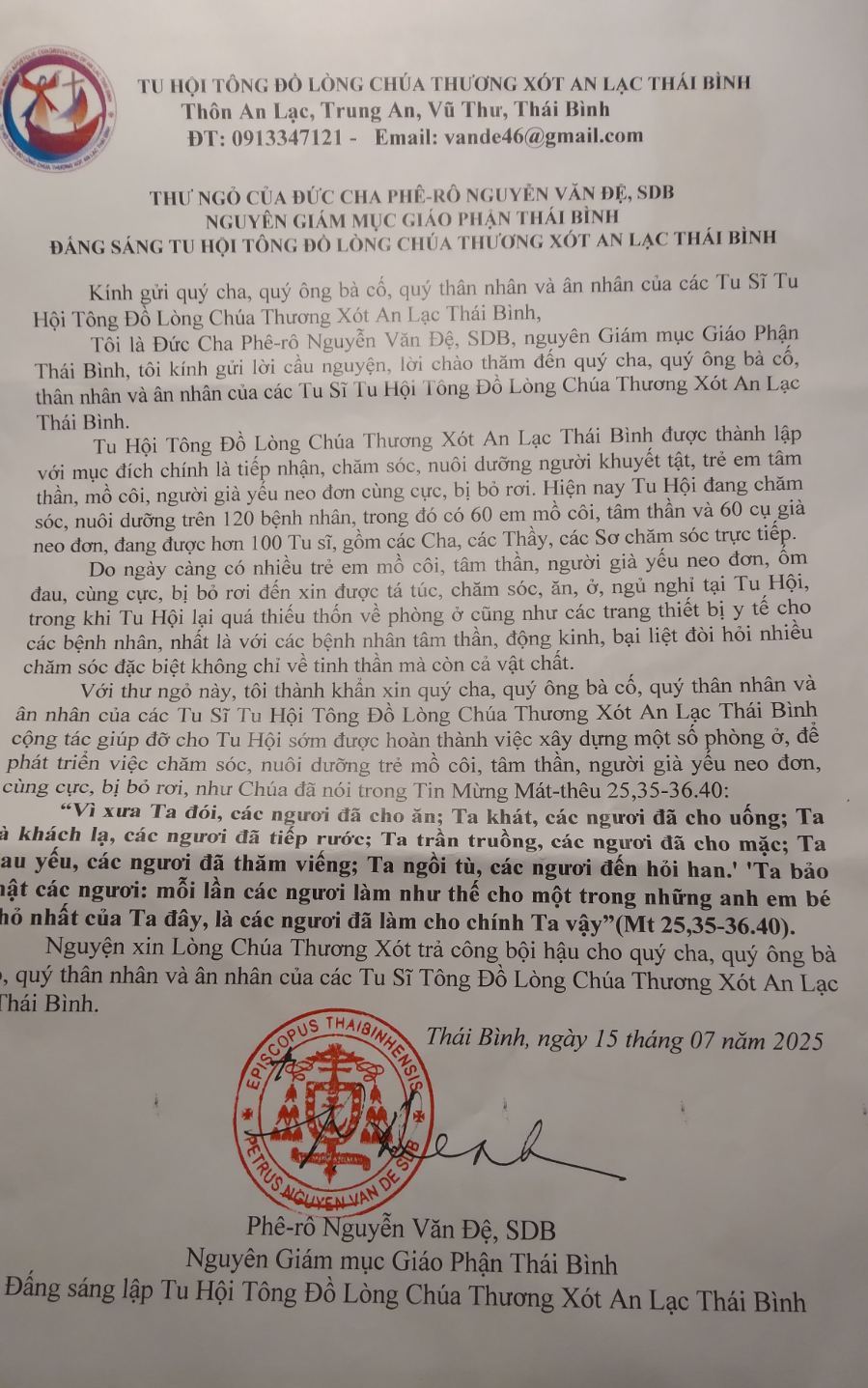 bao gồm cả cho Tu Hội Tông Đồ Lòng Chúa Thương Xót của