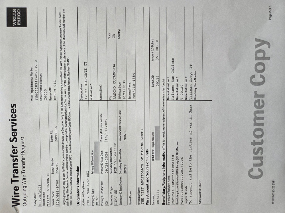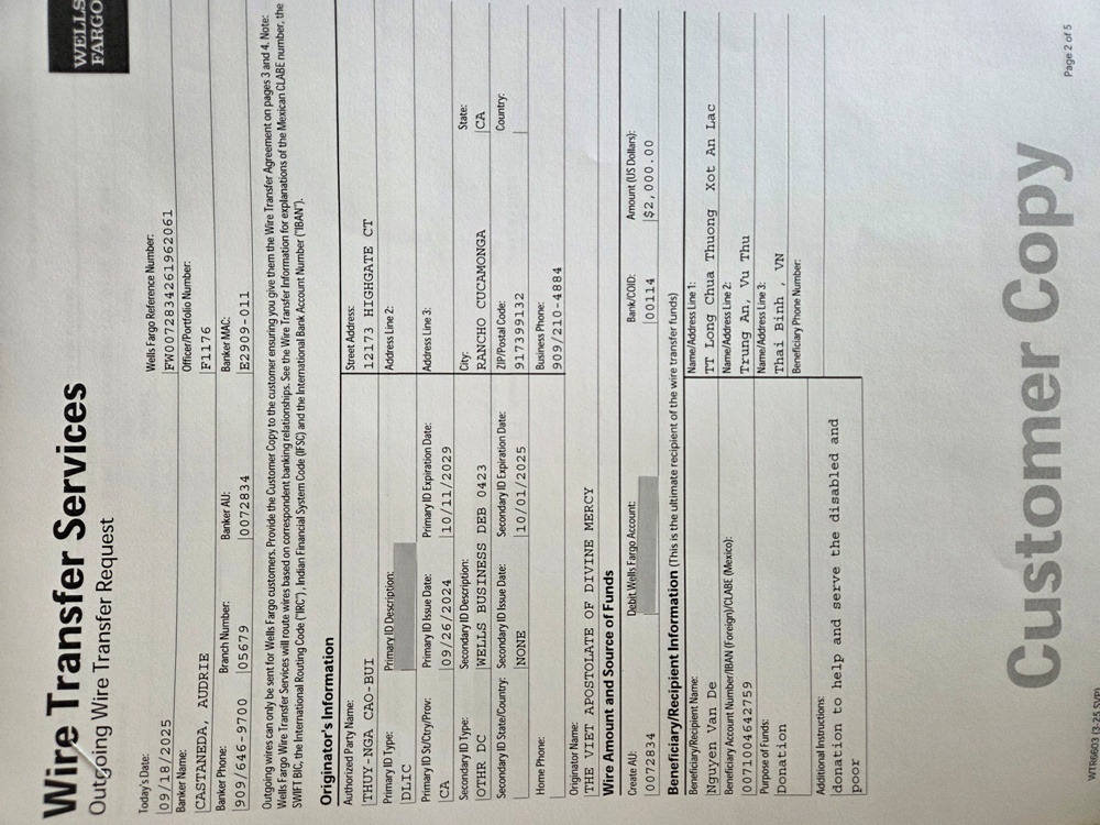 nhận của nhà băng bên Mỹ này. Nhận được số tiền thì xin Tu Hội cung