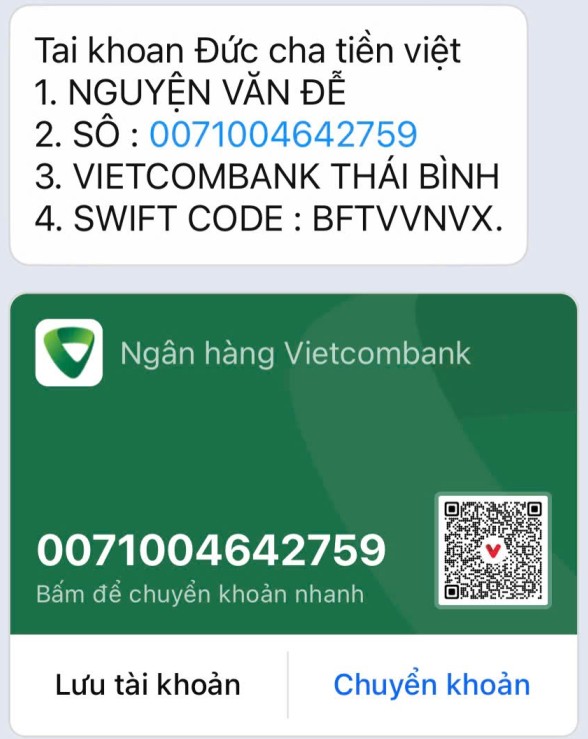tài khoản của đức cha nguyễn văn Đệ ạ và rồi nếu khi anh có thể giúp