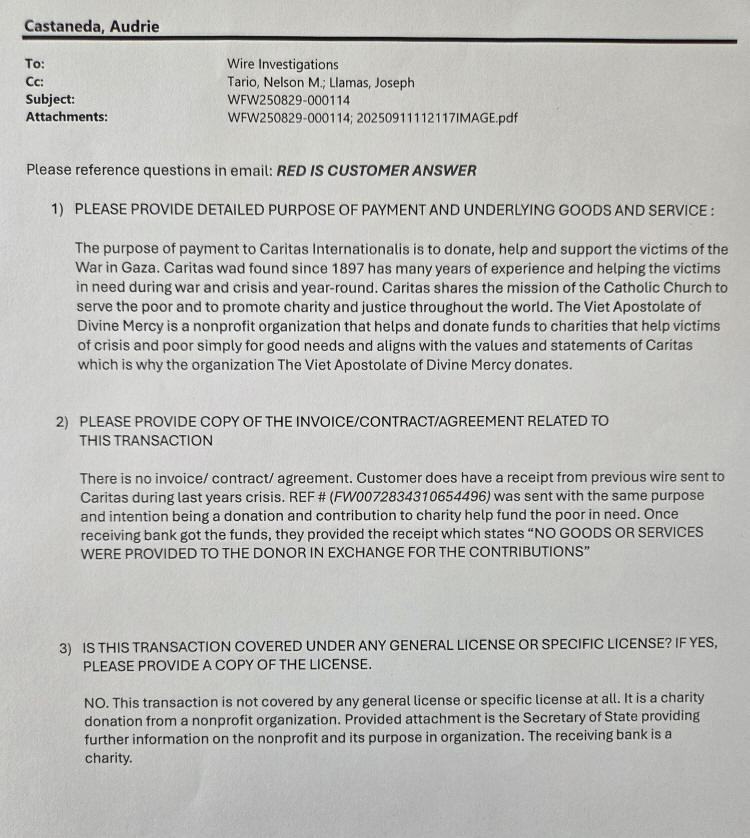 quan Caritas Quốc tế bị chặn lại để điều tra về hoạt