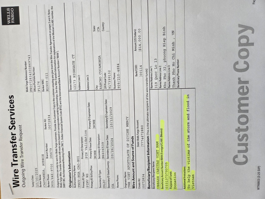 Sau khi nhận được số tiền chuyển ngân của chúng con, xin Tu Hội cung cấp cho