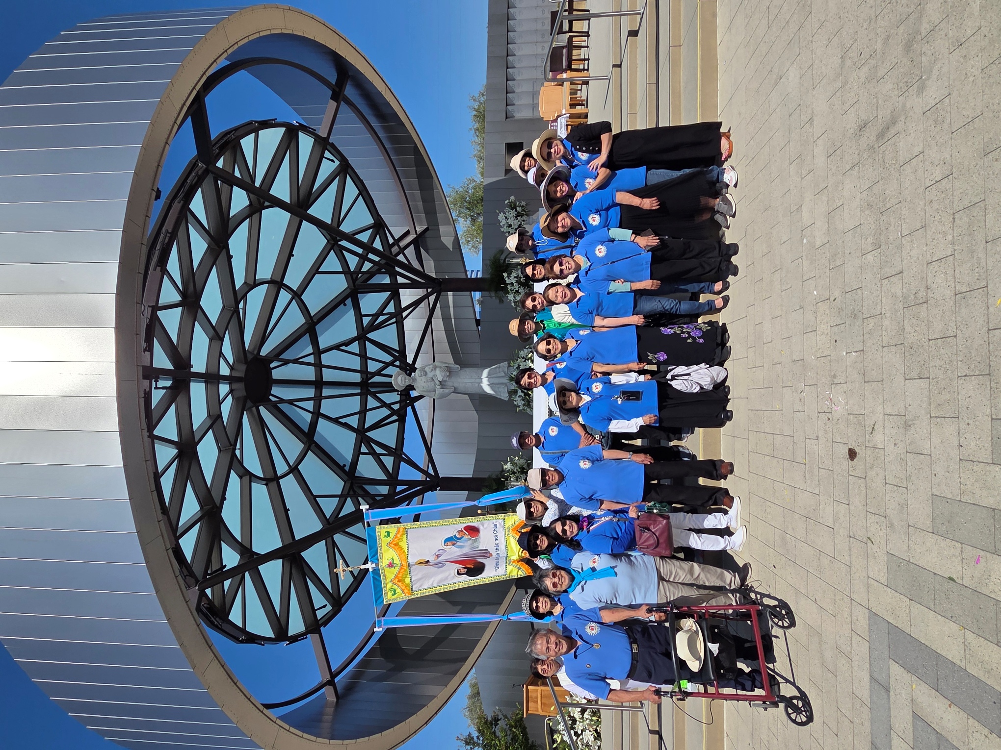 Nhóm TĐCTT trước tượng đài Đức Mẹ Lavang ngay trước khi cộng đồng Dân Chúa bắt đầu cung nghinh Đức Mẹ 4 giờ chiều (còn thiếu một số tham dự nũa)