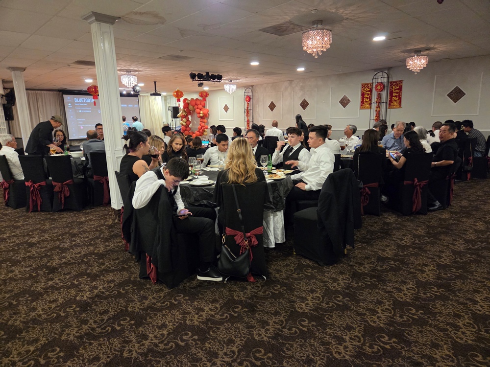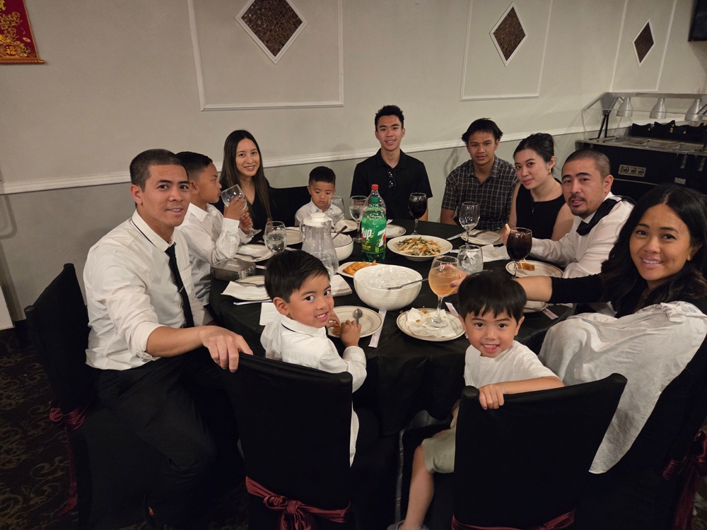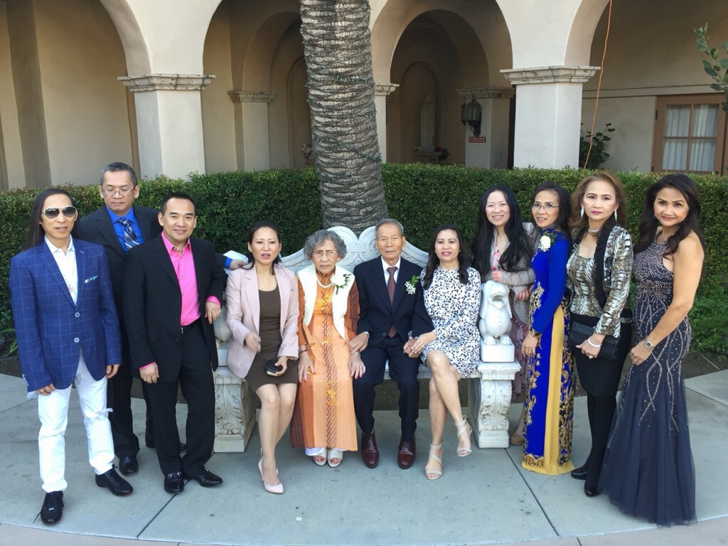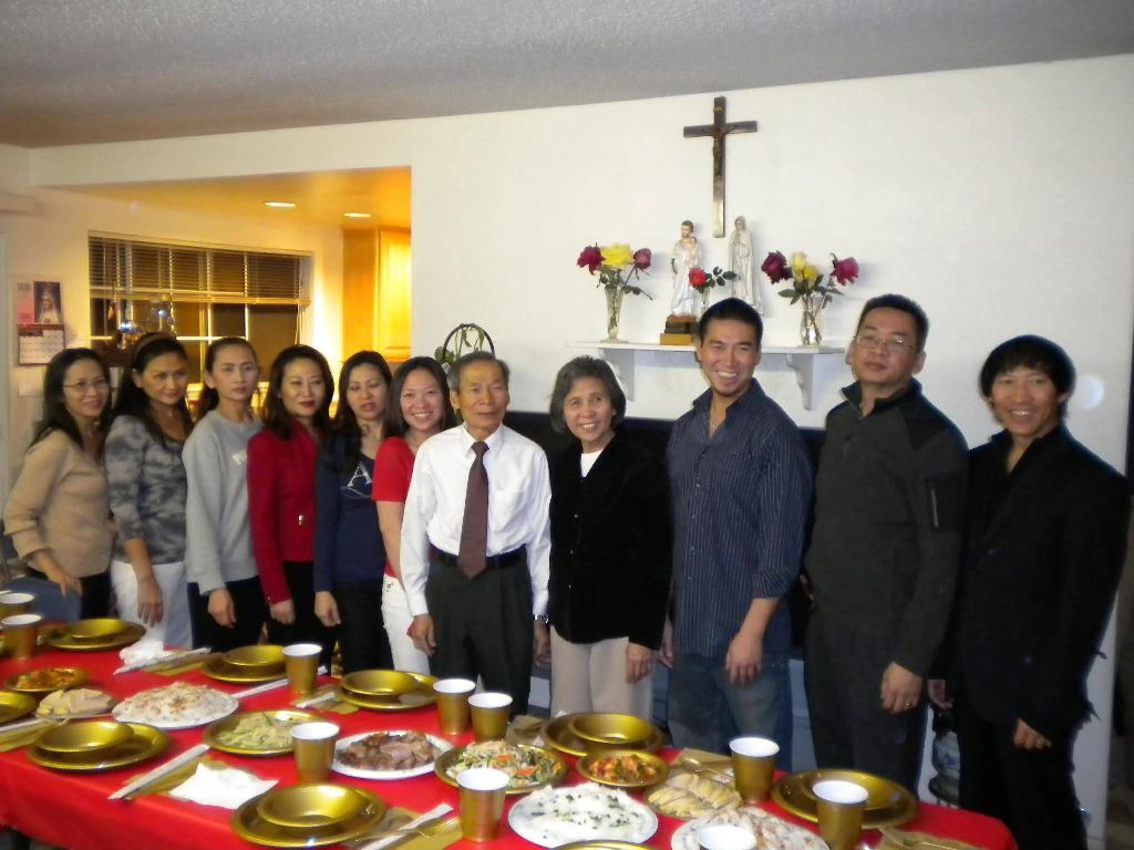 2 bàn trên và dưới, bao gồm chú Quang (cùng con gái) và các con của Cô Chú Ngoạn Liên từ San Diego