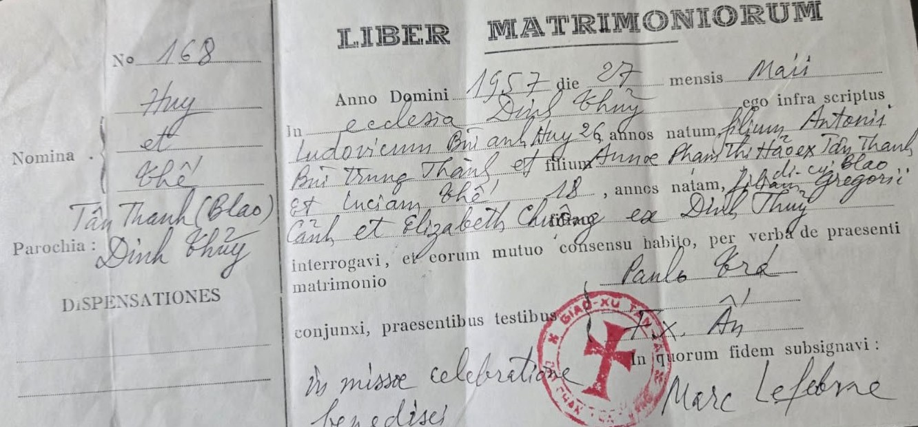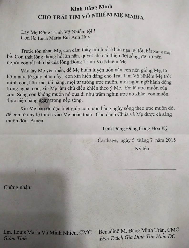 đã chẳng những cầu nguyện cho LH Louis Luca Maria Bùi Anh Huy là thân phụ và nhạc phụ của chúng em,