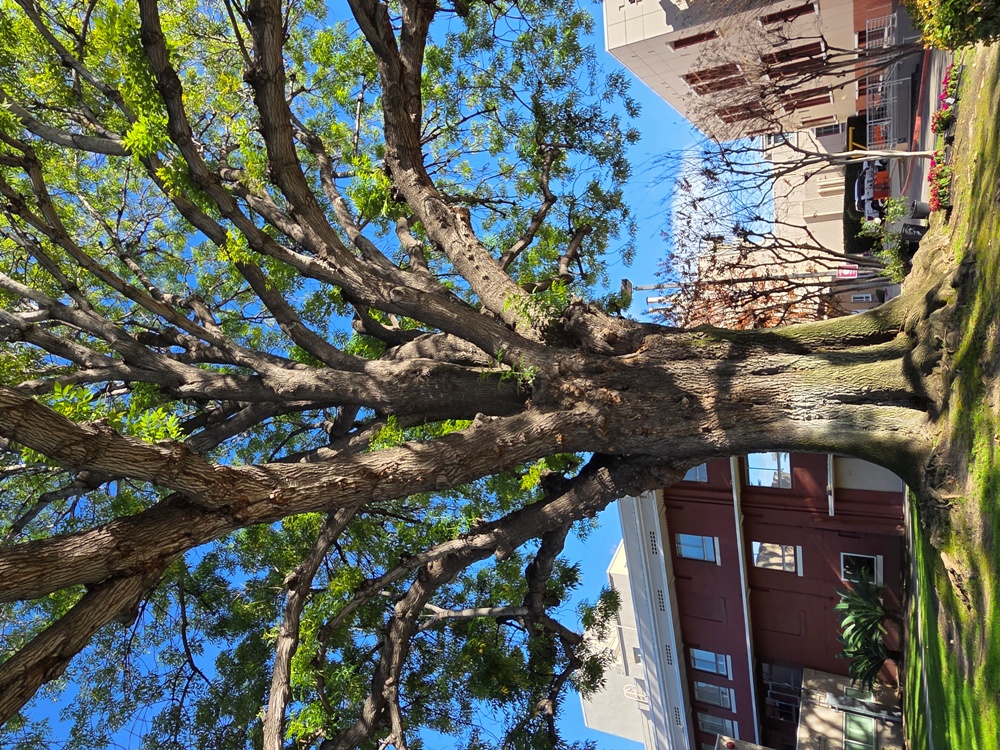 Trời hơi ấm nhưng tất cả đều được bóng cây che mát, bao gồm cả 2 bàn 100 hộp thực phẩm cho bữa trưa