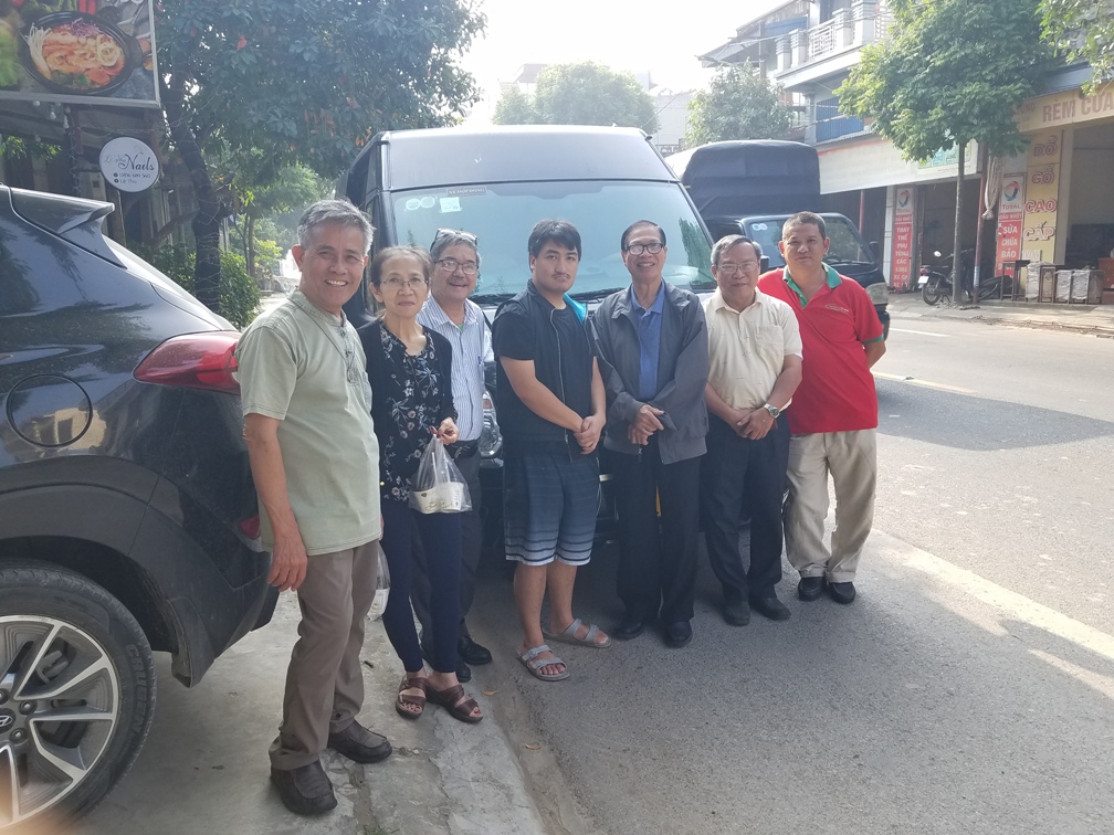 Theo chương trình thì 8 giờ tối mới có nghi thức dâng hoa kính Thánh Mẫu Fatima mừng bách niên Fatima 2017 và Thánh Lễ, vì giờ ấy dân chúng mới thảnh thơi dự lễ, như thói quen ở giáo xứ này. Bởi thế, lợi dụng thời khoảng còn gần cả 3 tiếng đồng hồ, phái đoàn đã được Anh Huy, linh mục chánh xứ Trại Sơn, dẫn về thăm trụ sở truyền giáo của dòng, cách giáo xứ Trại Sơn hơn 20 cây số, tức phải mất khoảng 45 phút lái xe, vì đường đi không như bên Hoa Kỳ.