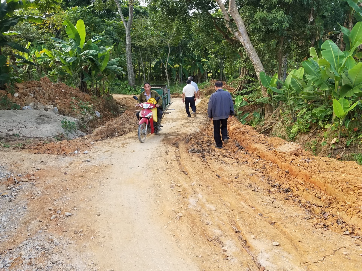 Quãng đường đi lên dốc bên kia cầu đang xây là khu vực lở đất, nên cần phải kè từng khối đá hai bên,