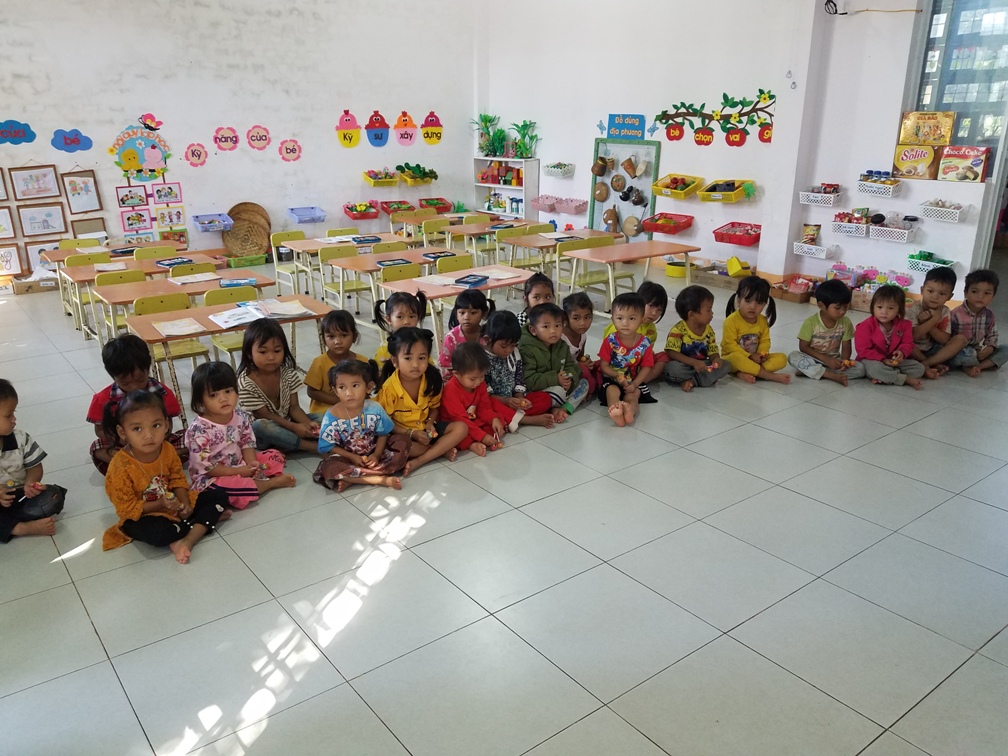 Đồng thời các em cũng được phái đoàn cho kẹo bánh nhâm nhi