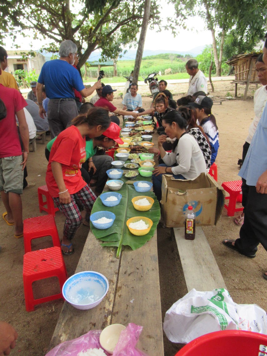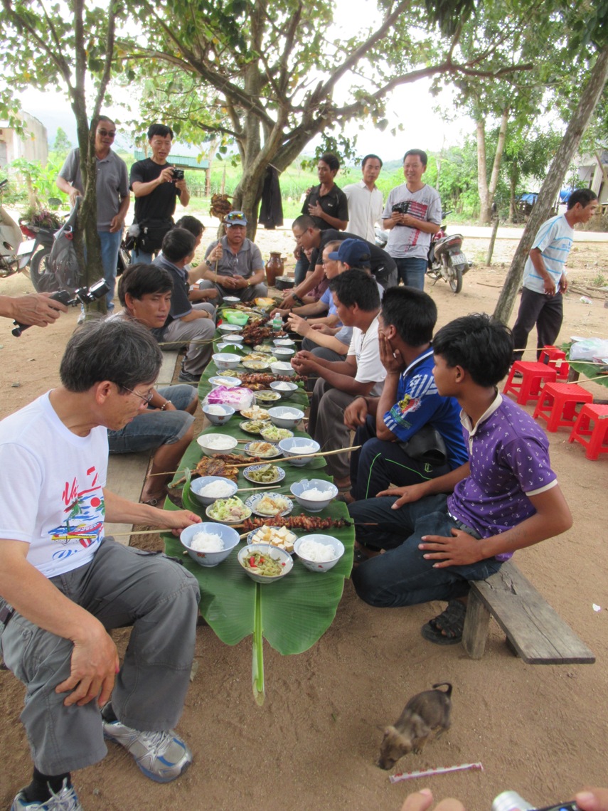 Ai trong phái đoàn cũng cảm thấy anh em dân tộc thiểu số ở đây hôm ấy rủ nhau ra nghênh đón phái đoàn một cách rất tự nhiên và thân tình như đã quen biết nhau từ lâu, dường như đã thấm nhiễm văn hóa Đồng Công được anh em dòng truyền thụ. Có lẽ vì thế mà anh em THĐC HK đã nhào vô ăn uống một cách tự nhiên, không kiêng cử gì hết, tự nhiên như ở nhà mà còn hơn ở nhà nữa, vì ở nhà không có các món lạ miệng và lạ bụng như thế: nào là gà leo núi, nào là cơm ống luồng, nào là rượu cần...