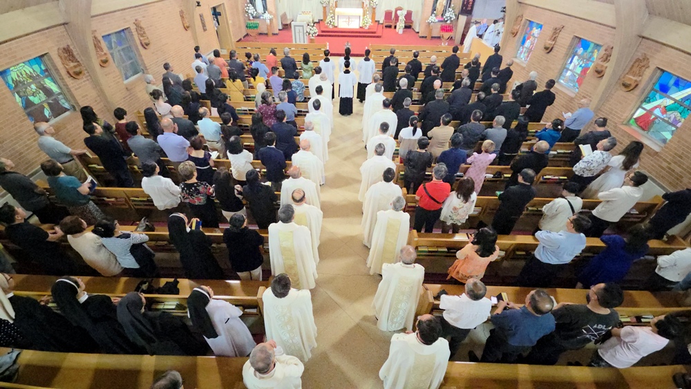 Linh mục đoàn CRM tất cả là 45 vị: 3 vị trên cung thánh, 3 vị ở chỗ ca đoàn lo đàn hát và kỹ thuật video, và 20 vị ngồi ở 4 hàng đầu