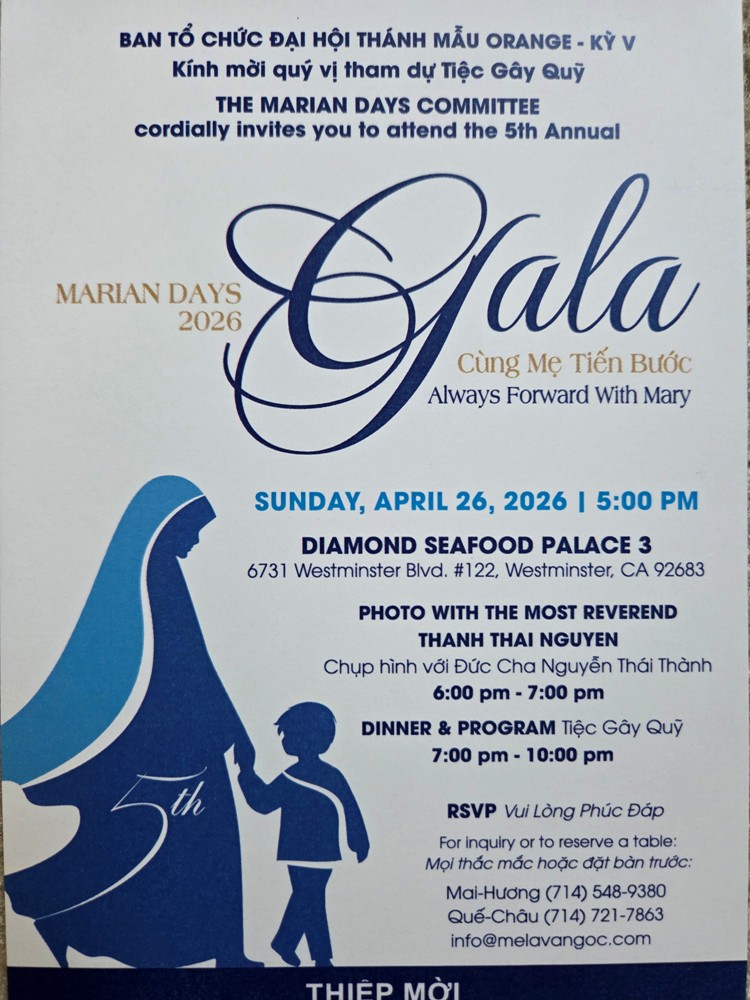 4/18/25 sau Thánh Lễ 8am ở nhà thờ CTTDVN lúc 8:45am - 10am. Xin