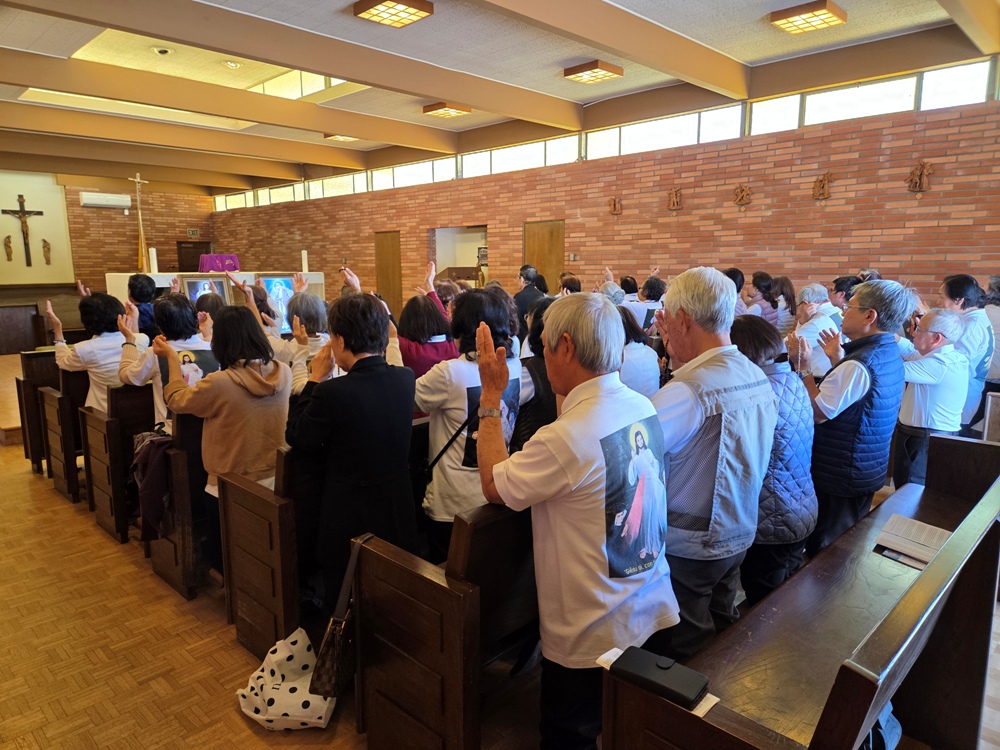 khi cử hành LTXC bằng Chuỗi Kinh Thương Xót anh chị em cũng giơ cao hai tay lên như cùng hiến dâng Chúa Kitô cho Chúa Cha