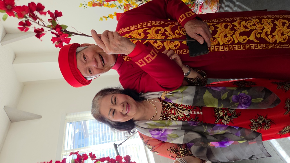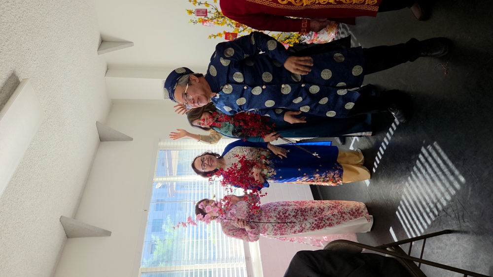 với 3 anh chị TĐCTT (Tammie Thủy, Nguyễn Hoa và Nguyễn Trương) tươi vui trong 3 bộ xuân phục nổi bật