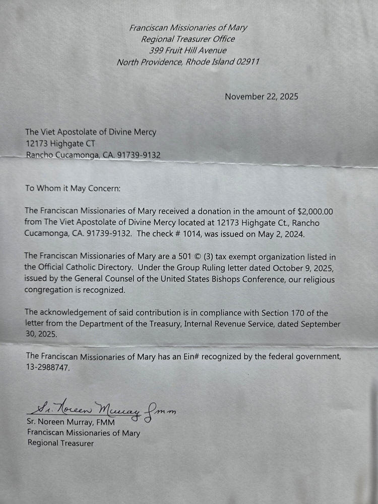 Cha ơi, con đang phục vụ Nhóm TĐCTT (Tông Đồ Chúa Tình Thương) ở Hoa Kỳ.