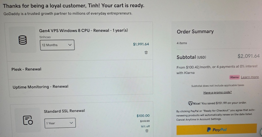 Hi Tinh! I'm GoDaddy's AI Assistant. I'd be happy to help with your