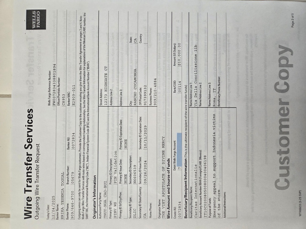 đóng góp với Tu Hội của Sơ theo các chi tiết Sơ cung cấp cho chúng con.