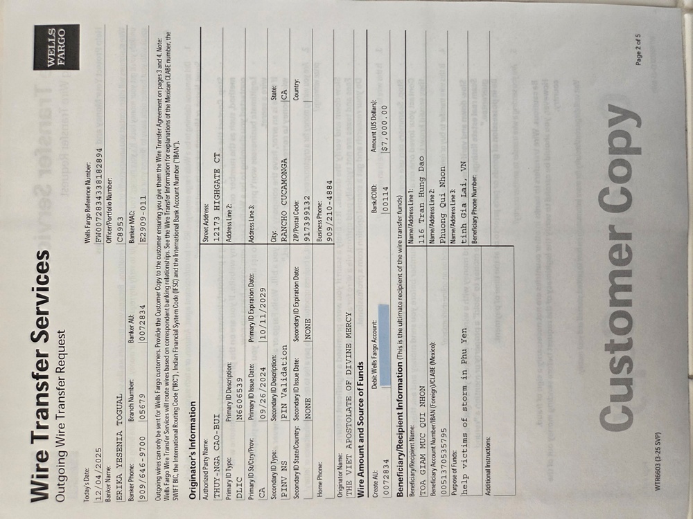Sau khi nhận được số tiền chuyển ngân của chúng con, xin Tu Hội cung cấp cho