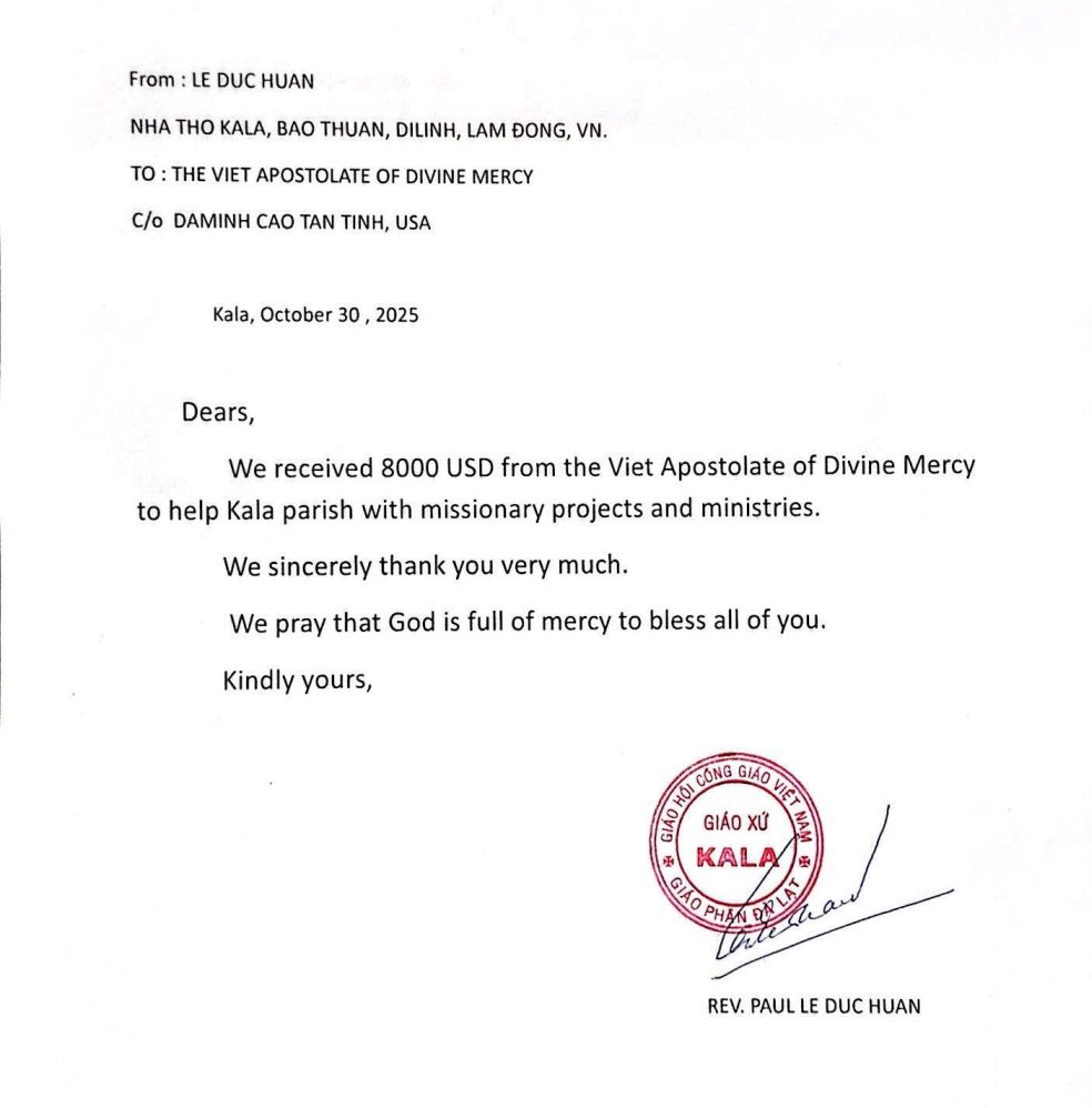 Tạ ơn LTXC. Chúng con mới chuyển ngân 2 ngàn MK về cho Tu Hội Tông