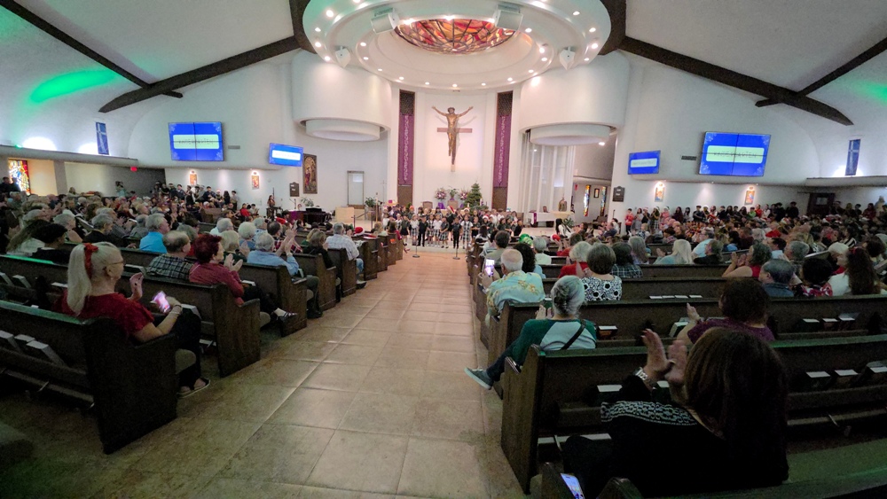 From classrooms students went to the church for weekly school mass on Friday