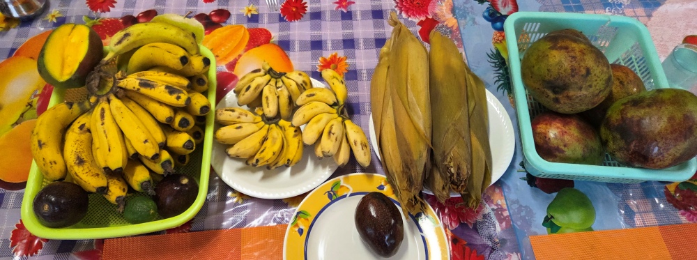 sẵn có nhất là dứa/thơm, bắp/ngô, chuối, bơ, chanh và xoài trái nào trái nấy mập mạnh rắn chắc.