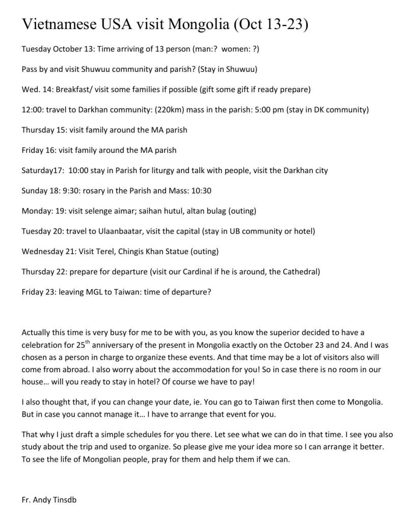 Dòng Cha đang phục vụ truyền giáo ở Mông Cổ để con liên lạc với ngài nhờ