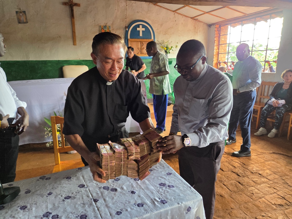 Cả một thùng hiện kim tặng cho cộng đoàn dân Chúa ở đây, mỗi gia đình 20 ngàn đồng Burundi