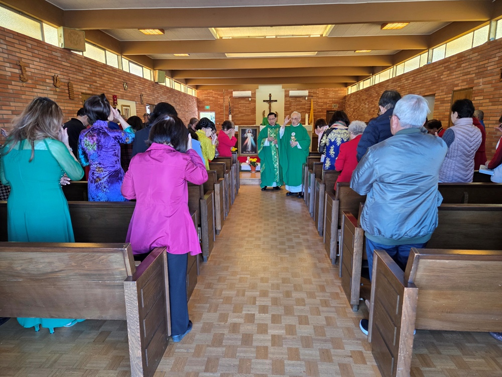 Bài Phúc Âm: Cha Đặng Phượng Hoàng (Lm thuộc TGP LA mới về hưu ở Anaheim); Giảng lễ: Cha Phó Tổng Linh hướng Nguyễn Đức Minh