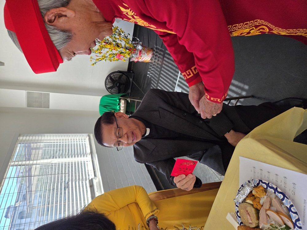 Anh Nguyễn Văn Thế mời Cha Đặng Phượng Hoàng đến chung vui Tết với Nhóm TĐCTT cũng tự bỏ tiền túi ra thay Nhóm TĐCTT làm quà tặng Tết cho ngài