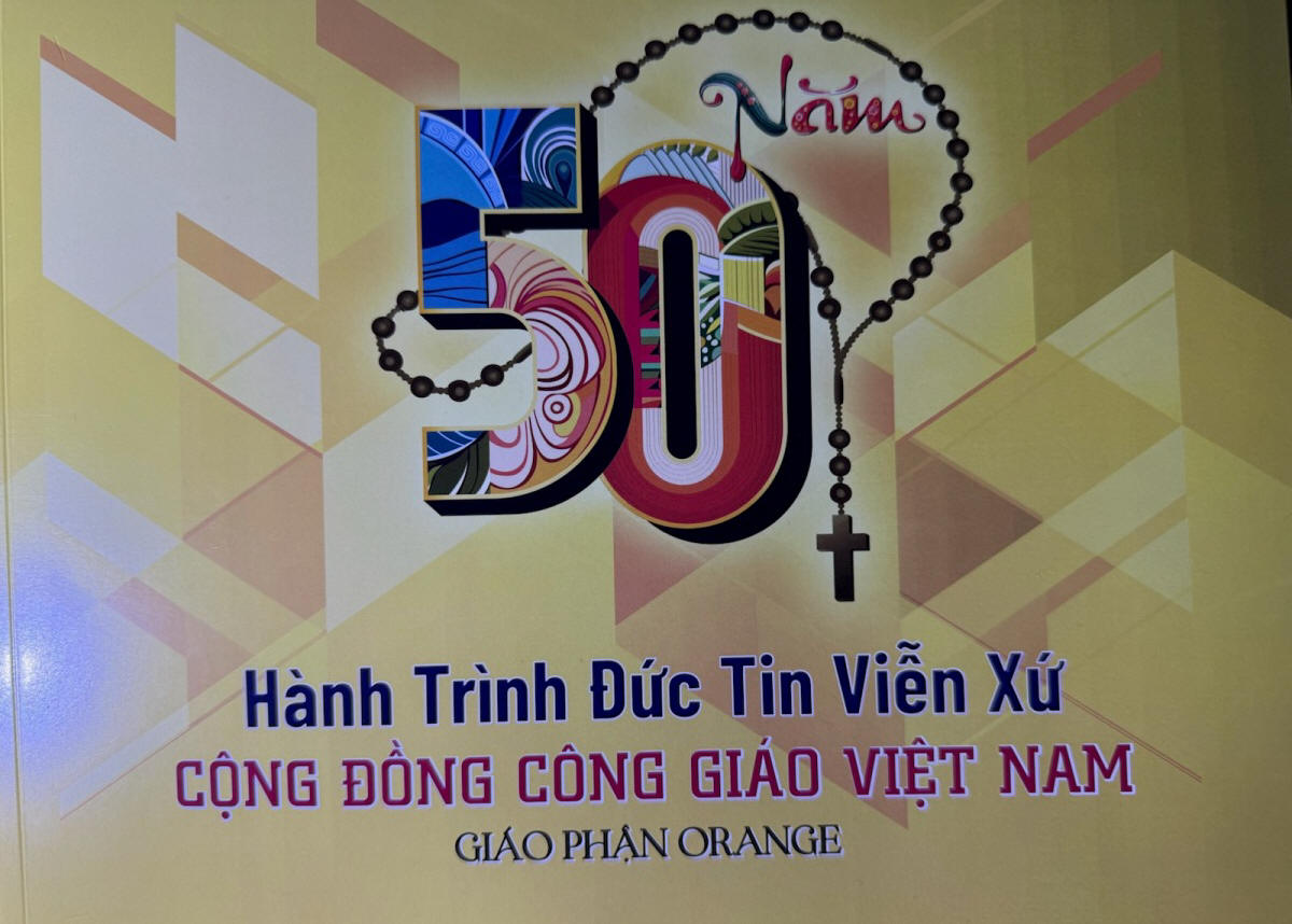Món quà bào gồm cuốn Kỷ yếu 50 Năm Hành Trình Đức Tin Viễn Xứ của CĐ CG VN GP Orange và 1 bao thư hiện kim